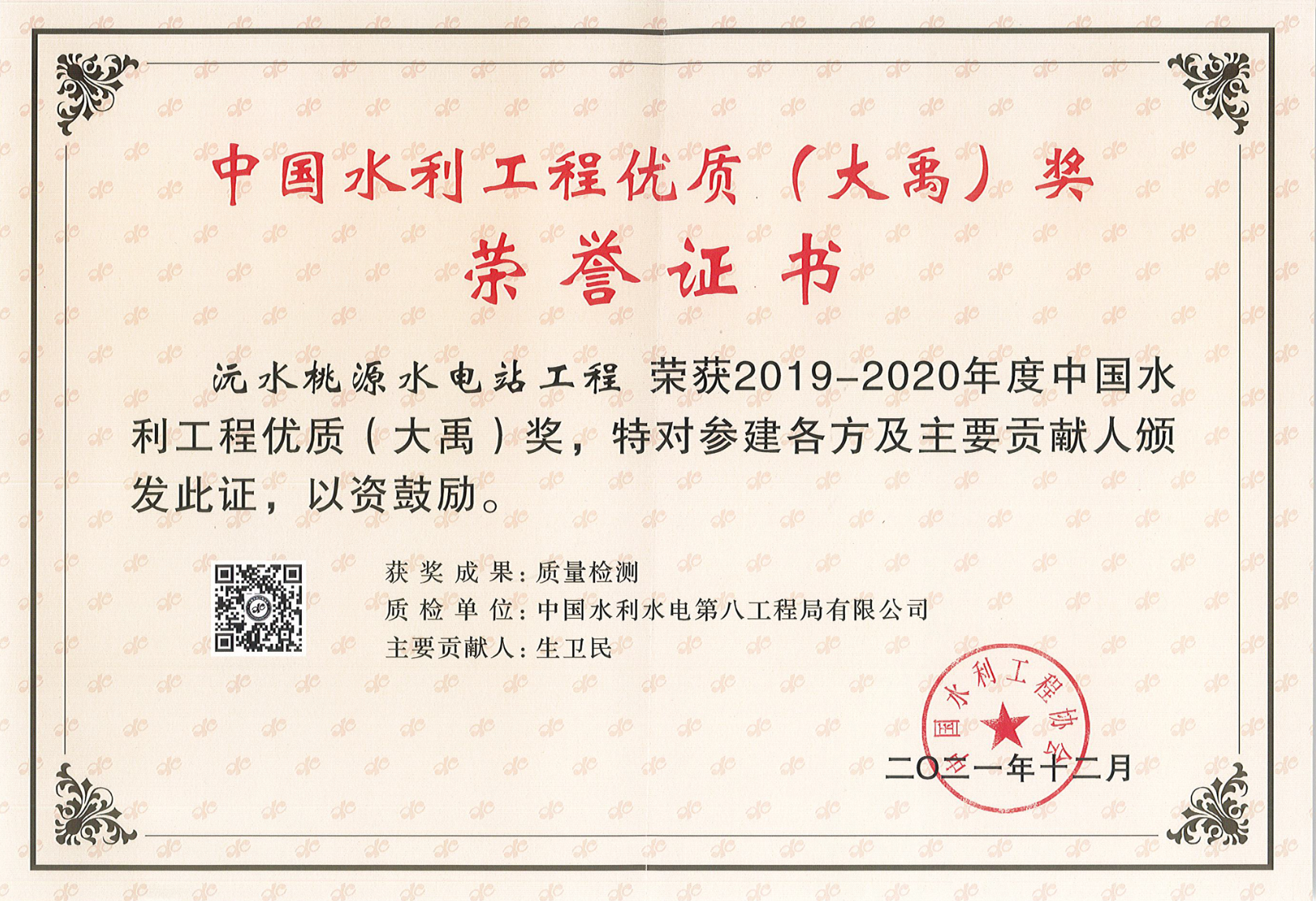 中國(guó)水利工程優(yōu)質(zhì)(大禹)獎(jiǎng)