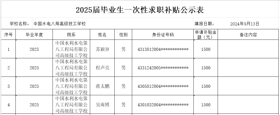 關(guān)于長沙市“2025屆畢業(yè)生一次性求職創(chuàng)業(yè)補貼”的公示 | ||||