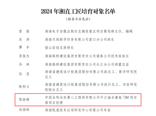簡曉輝入選“湘直工匠”培育對象名單